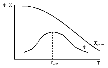 влияние T на кинетический фактор и термодинамику противоречиво