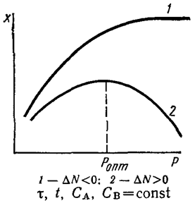 Но не во всех случаях выгодно применять высокое давление (реакции с разным ΔN)
