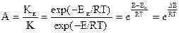 Так, например, если ΔE = 50 кДж/моль, то при 600 К