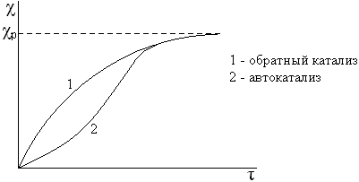 Автокатализ – химические процесс, в которых катализаторами служат промежуточные или полученные продукты. К ним относятся некоторые реакции разложения, горения, полимеризации, восстановления Ni и Cr из оксидов водородом, взаимодействие перманганата калия с щавелевой кислотой (kat – образующийся Mn2+). Для этих процессов характерен индукционный период.