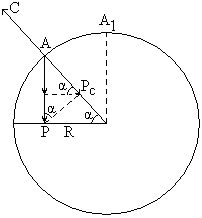 в критической точке А (когда истирания нет) sinα = sin 90° =1
