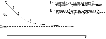χ, χр – действительное и равновесное влагосодержание.
