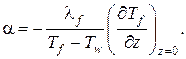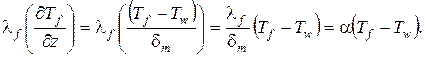 Знак “минус” в последнем выражении часто опускают, поскольку он отражает только противоположную направленность теплового потока относительно градиента температуры в пограничном слое. А сами граничные условия третьего рода задают в виде коэффициента теплоотдачи α и температуры внешнего потока Tf.