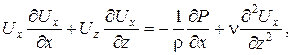 , Ux=Uz = 0 по условиям прилипания, следовательно: