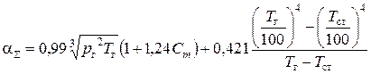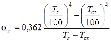 Общим и существенным недостатком первой группы формул (помимо аддитивной структуры и несовпадения размерности составляющих формулы) следует считать заниженные значения лучистой составляющей теплового потока, поскольку считалось, что излучателем являются многоатомные газы, а не твердые частицы сажи. При этом за определяющую температуру для лучистой составляющей принималась текущая термодинамическая температура, а не температура пламени.