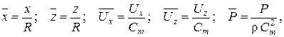 Отнесем все размерные величины в этом уравнении к характерным размерам, скоростям и напорам. Это – радиус цилиндра R, средняя скорость поршня Сm, аналог скоростного напора r Cm 2:
