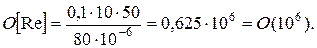При атмосферном давлении n773,0 = 80×10–6 м2/с. Тогда порядок числа Рейнольдса составит: