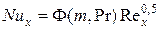 Точка m = –0,0904 представляет собой точку, в которой коэффициент трения Cf = 0, т.е. происходит отрыв потока. Поэтому при меньших значениях m (внутри зоны отрыва) следует использовать зависимость