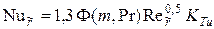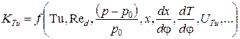 т.е. является функцией величин, определяющих влияние процесса сгорания топлива на теплоотдачу (степени турбулентности заряда, числа Рейнольдса, превышения давления над линией сжатия, доли выгоревшего топлива, скорости тепловыделения, скорости изменения температуры рабочего тела, турбулентной скорости пламени и т.д.)