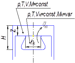Разделим объем камеры сгорания на две части: на надпоршневое пространство и камеру в поршне, для которой Vk = const, а Mk = var – текущая масса заряда в камере поршня не постоянна.