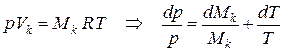 Поскольку принято положение о квазиравновесности заряда, то изменения давлений для камеры в поршне и всего надпоршневого пространства одинаковы: