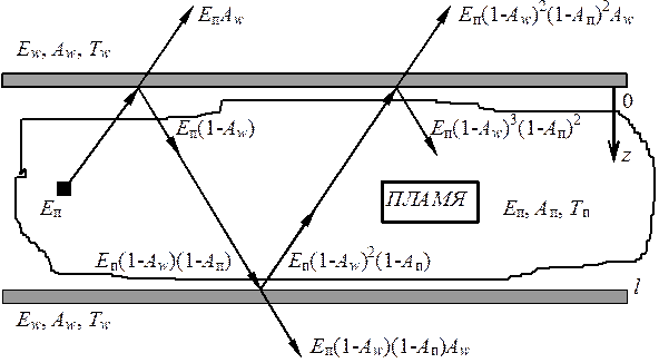 «п» - индекс, относящийся к пламени, «w» - к стенке