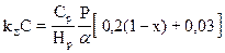Здесь: Сp и Hp - число атомов углерода и водорода в исходном топливе, P - текущее давление [Бар], a - коэффициент избытка воздуха при сгорании, x - текущая относительная доля выгоревшего топлива.