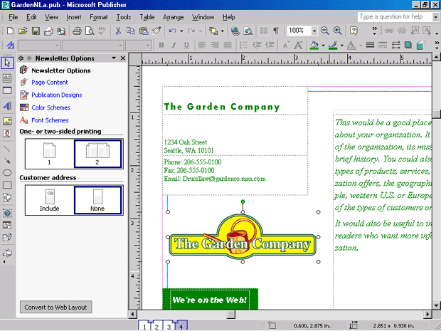 - Щелкните на кнопке Сохранить (Save). Publisher 2002 сохранит изменения в файле GardenNL.pub.