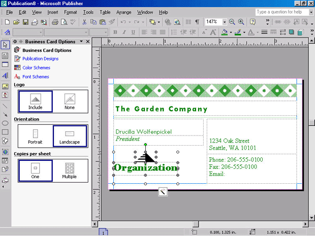 Создание визитной карточки с помощью Publication Design Set