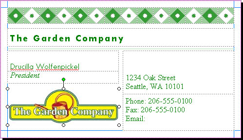 Совет.Логотип компании "Все для сада" может оказаться слишком большим. В этом случае щелкните правой кнопкой мыши на логотипе и щелкните на Формат рисунка (Format Picture). Щелкните на вкладке Размер (Size) в области Масштаб (Scale), уменьшите масштаб до 20%. Если вы использовали направленную вниз стрелку, логотип автоматически примет нужный размер. Если вы вводили 20%, нажмите клавишу (Tab), чтобы размер рисунка стал соответствовать отведенному месту. Уменьшив размеры рисунка до 20%, щелкните на OK.