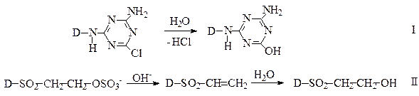 Существенной сложностью применения активных красителей является их склонность к гидролизу [5] с переходом в инактивированную форму: