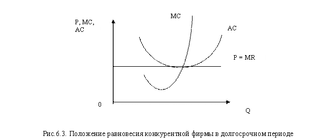 В условиях совершенной конкуренции в долгосрочном периоде (рис.6.3) максимум прибыли достигается тогда, когда выполяется равенство: