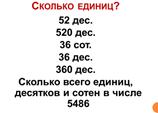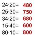 А кто помнит, как найти скорость? V=S:t Посмотрите на схему, которая у нас получилась, и устно составьте задачу на нахождение пути. Но сначала вспомним формулу нахождения пути S=V·t Составьте обратную задачу. Но прежде вспомним формулу нахождения времени t=S:V Задание 2. А теперь давайте решим устно задачу. Слушайте внимательно условие! (Задача 58) Буратино и Незнайка пошли в школу в 8 ч 30 мин. У школы они встретились. Буратино шел до встречи с Незнайкой 12 мин. Сколько минут был в пути Незнайка? Ребята, кто решил задачу? Поднимите руку. Почему ты так решил (а)? Ответ: 12 минут, т. к. ребята вышли в одно время и встретились в одно время у школы. Вывод: если 2 человека вышли в одно время и встретились одновременно, то с какой бы скоростью они не шли, время, затраченное на путь, одинаковое. Задание 3. Сколько всего единиц в 52 дес., 520 дес., 36 сот., 36 дес., 360 дес. Ответ: 520, 5200, 3600, 360, 3600 Сколько всего единиц, десятков, сотен в числе 5486. Ответ: 5486 единиц, 548 десятков, 54 сотни. Задание 4. А теперь мы решим устно примеры. 24*20 =480 Сначала 24 умножим на 2, потом на 10 25*30 =750 Сначала 25 умножим на 3, потом на 10 34*20 =680 Сначала 34 умножим на 20, потом на 10 15*40 =600 Сначала 15 умножим на 4, потом на 10 80*10 =800 Чем похожи все эти выражения? (умножаются на круглые числа) |