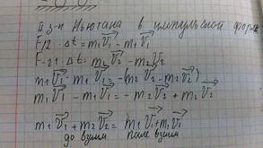 Суммарный импульс до взаимодействия = суммарному импульсу тел после взаимодействия.