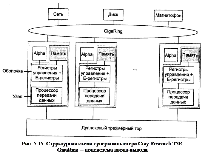 На рис. 5.15. представлена структура машины Cray T3E, которая относится к классу MPP-систем.