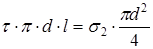 1) Нагрузка, вызывающая напряжение сдвига волокна диаметра d и длиной l определяется: