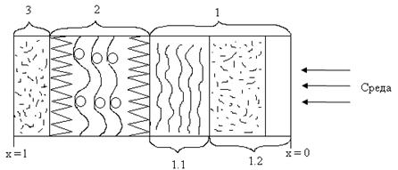 Конструкционные стеклопластики представляют наиболее сложную гетерогенную по макроструктуре систему, включающую несколько функциональных слоев. Эти слои отличаются как по структуре, так и по компонентам. Типичная структура коррозионного изделия изображена на рисунке.