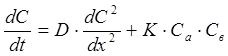 При контакте агрессивной среды с полимерным материалом, в данном случае с гелькоутом эпоксидной смолы, начинается диффузия среды в объем композиционного материала. Она подчиняется уравнению нестационарной диффузии (II закон Фика) осложненной химической реакцией: