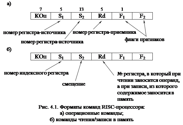 Как уже отмечалось, система команд RISC- процессоров значительно меньше набора команд ЭВМ с традиционной архитектурой.