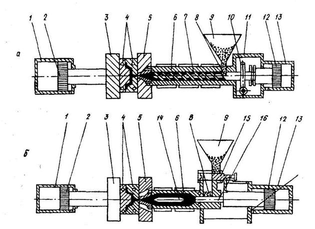 Схема литьевой машины со шнековой и плунжерной пластикацией расплава: