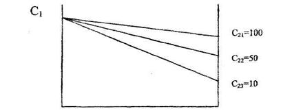 Нетрудно заметить, что, чем более дешевый наполнитель, тем ниже стоимость композита. При снижении С21 и С22 совершенно необходимым является учет изменения свойств композиции для каждого наполнителя, поэтому если задаваться приемлемой для данного производства стоимостью композиции С, то одинаковые результаты по свойствам можно получить для 60% первого наполнителя, 30% - второго и 20% - третьего, в том случае если для характеристики КМ используются объемные доли, то стоимость единицы объема КМ рассчитывается по формуле: