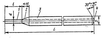 1 – стержень; 2 – участок перехода; 3 – покрытие; 4 – контактный торец без покрытия