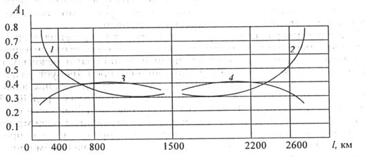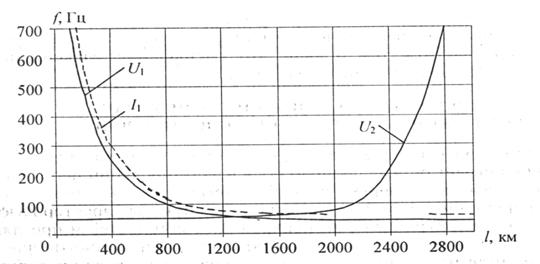 На рисунке 7.4 приведены зависимости амплитуды первой составляющей напряжения от расстояния до точки КЗ при двух углах включения. Существенное влияние на частоты и амплитуды свободных составляющих оказывают такие характерные для линий сверхвысокого напряжения явления, как