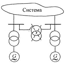 Стационарное деление сети осуществляется в нормальном режиме с помощью секционных, шиносоединительных и линейных выключателей. Оно производится тогда, когда уровень тока КЗ в узле сети превышает допустимые значения для параметров установленного оборудования. На рисунке 8.2 показан пример деления сети на электростанции с двумя распределительными устройствами двух повышенного напряжения. Деление производится в результате разрыва трансформаторной связи между распредустройствами двух повышенных напряжений. СДС оказывает существенное влияние на режимы, устойчивость и надежность работы электрической системы, также на потери мощности в сетях.