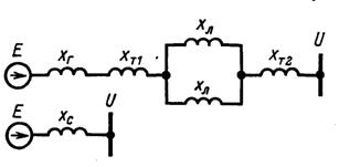 Сумма индуктивных сопротивлений генераторов, трансформаторов и линий дает результирующее индуктивное сопротивление системы: