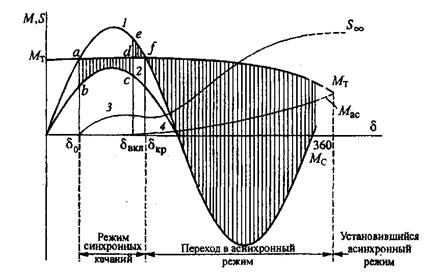 . На ротор начинает действовать ускоряющий избыточный момент, приводящий к дальнейшему увеличению угла