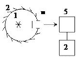 1 – источник излучения, 2 –фотометрический шар; 3 – диафрагма, 4 – экран, исключающий прямое попадание лучей на приёмник, 5 – приемник излучения.