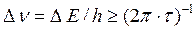 Уширение спектральной линии обусловлено постулатами квантовой физики, а именно принципом неопределенности Гейзенберга, и называется естественной шириной спектральных линий. Естественная ширина спектральной линии вычисляется из соотношения неопределённости Гейзенберга: