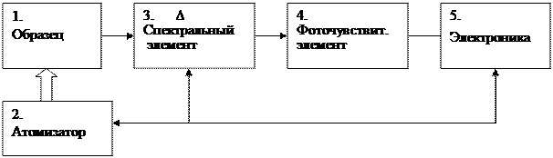 Обобщенная схема прибора атомно–эмиссионной спектроскопии приводится на рисунке.