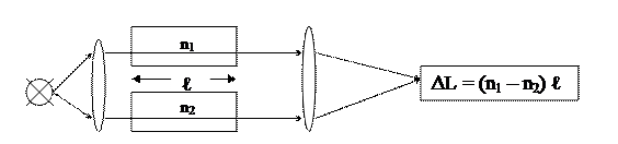 4. Интерференционные методы. Основаны на связи оптической разности хода ∆L с показателями преломления веществ n1 и n2. По оптической разности хода определяется искомый показатель преломления.