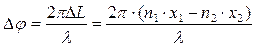 Если ΔL=mλ, где m – порядок интерференции, то наблюдается максимум интерференционной картины. В этом случае ∆φ=2π, тогда