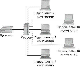 Теперь сети позволяют целому ряду пользователей одновременно "владеть" данными и периферийными устройствами. Если нескольким пользователям надо распечатать документ, все они могут обратиться к сетевому принтеру.
