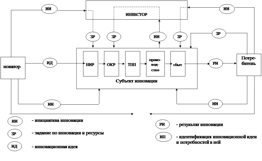 - преобразование инновационной идеи из полученных результатов в объект, способный удовлетворить потребность в инновации у конкретного потребителя (цикл «исследование - производство - сбыт») (рис. 4).