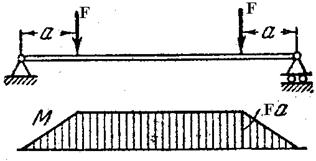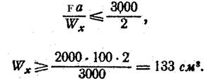 Пример 2. Подобрать двутавровое сечение балки, обеспечив двукратный запас прочности при F =20 Кн, а = 1м, σтр = 300 МПа.