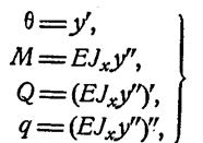 Сопоставляя это с дифференциальными зависимостями между M, Q и q при изгибе (1) получим ряд соотношений: