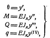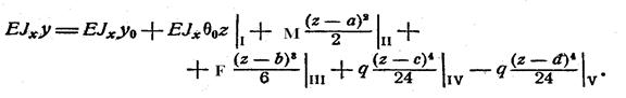Эти уравнения удобно записать в виде одного универсального уравнения упругой линии балки: