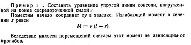 Если решается задача при больших упругих перемещениях, то уравнение упругой линии будет иметь вид: