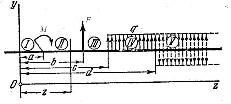 Задача заключается в выявлении особенностей, вносимых в уравнение упругой линии различными типами внешних силовых факторов. Запишем выражение Мизг для каждого участка: