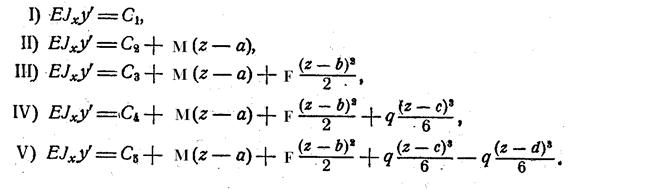 Для определения координат точек упругой линии каждого участка следует пользоваться членами уравнения, расположенными слева от вертикальной линии с индексом, соответствующего участка.
