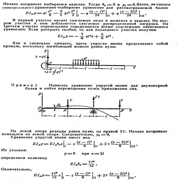 Из примеров видно, что если балка имеет п участков, необходимо совместно решить 2 п уравнений для определения 2 п постоянных интегрирования.